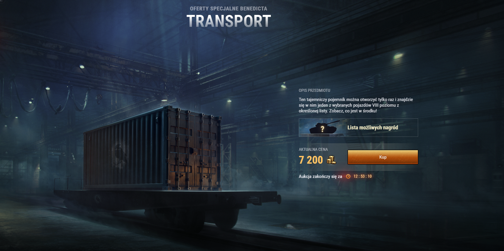 Ostatnia szansa! Przyjrzyjmy się kontenerowi! Jeśli lubisz niespodzianki, to Twoja kolej. Nie ma licytacji, tylko gra losowa. Kontener zawiera jeden z poniższych pojazdów, każdy z własnym prawdopodobieństwem.