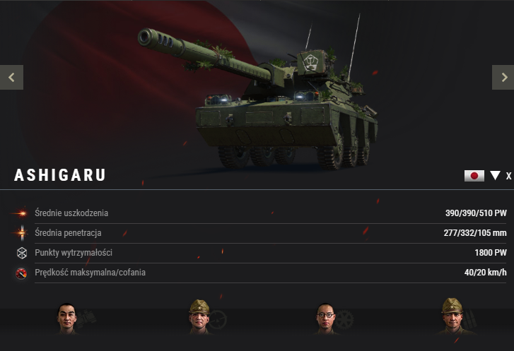 XAshigaru , nowy japoński, kołowy niszczyciel czołgów X poziomu z zacięciem snajperskim i działem, które dzięki jego parametrom można nazwać fenomenalnym.